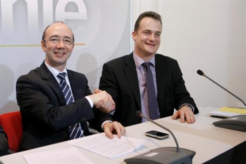 | Les ministres présidents de la Fédération Wallonie-Bruxelles, Rudy Demotte (gauche), et de la Communauté germanophone, Oliver Paasch |