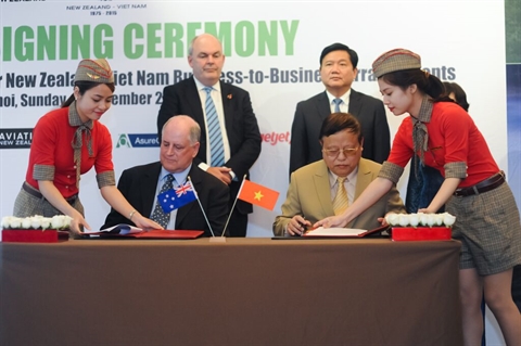 | Signature du mémorandum de coopération entre Vietjet et l’Aviation de Nouvelle-Zélande, le 15 novembre à Hanoi. |