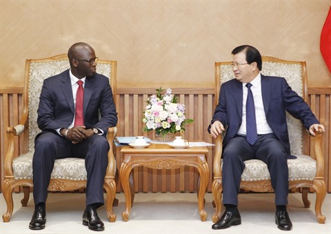 | Le vice-Premier ministre Trinh Dinh Dung (droite) et le directeur national de la Banque mondiale au Vietnam, Ousmane Dione. |