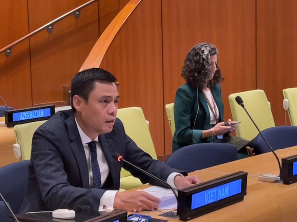 | Dang Hoàng Giang, chef de la Mission permanente du Vietnam auprès de l’ONU, prend la parole lors de l'événement, le 11 mai. |