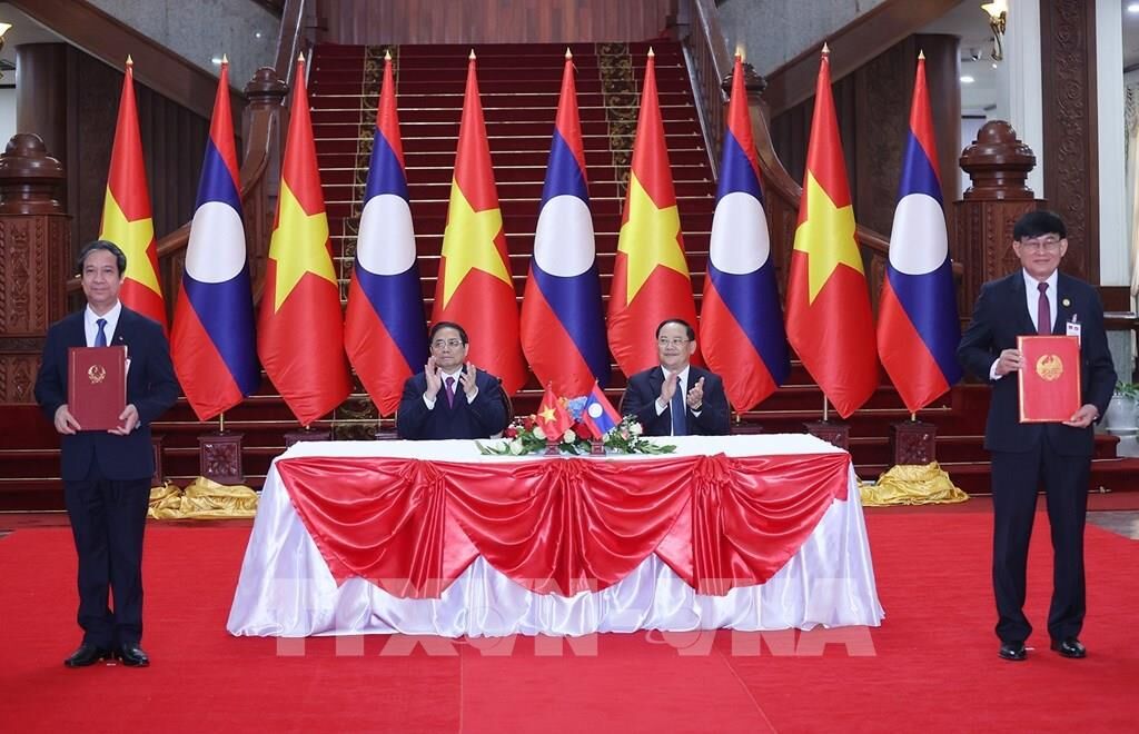 | Le Premier ministre vietnamien Pham Minh Chinh (gauche) et le Premier ministre lao Sonexay Siphandone assistent à la cérémonie de signature de documents de coopération. |