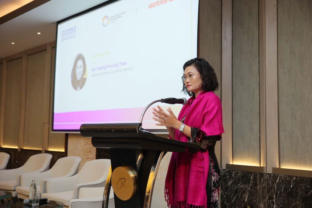 | Hoàng Phương Thảo, directrice exécutive d’ActionAid Vietnam, prend la parole à l'événement. |