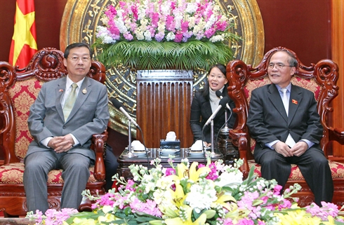 | Le président de l'Assemblée nationale du Vietnam, Nguyên Sinh Hùng (droite), a reçu le 12 décembre à Hanoi le vice-président du Sénat thaïlandais, Surachai Liengboonlertchai |