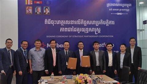 | Cérémonie de signature d'un mémorandum de coopération stratégique de 5 ans entre Metfone et la succursale de la MB au Cambodge, le 26 mars à Phnom Penh. |
