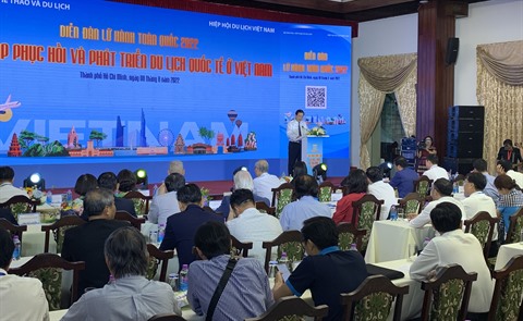 "C'est pourquoi le forum d'aujourd'hui doit mettre l’accent deux sujets principaux : échange sur les tendances du développement du tourisme international après la pandémie de COVID-19 ; et les problèmes spécifiques qui doivent être résolus pour une reprise rapide et durable du tourisme international. Les entreprises doivent coopérer et créer des liens pour construire une chaîne de produits touristiques uniques et différents afin de contribuer à faire du Vietnam une destination attrayante pour les touristes internationaux et aussi pour les Vietnamiens", a souligné le président Vu Thê Binh.