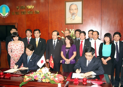 | Cérémonie de signature de convention de coopération dans l'agriculture, la sylviculture et la pêche entre le Vietnam et le Japon, le 4 mai à Hanoi |