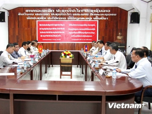| Séance de travail entre la délégation de l’Académie des sciences sociales du Vietnam et les responsables de l’Institut national des sciences sociales du Laos, le 28 juillet au Laos. |