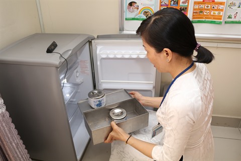 | La rectrice-adjointe de l'école primaire Lê Quy Dôn conserve des échantillons alimentaires du jour. |
