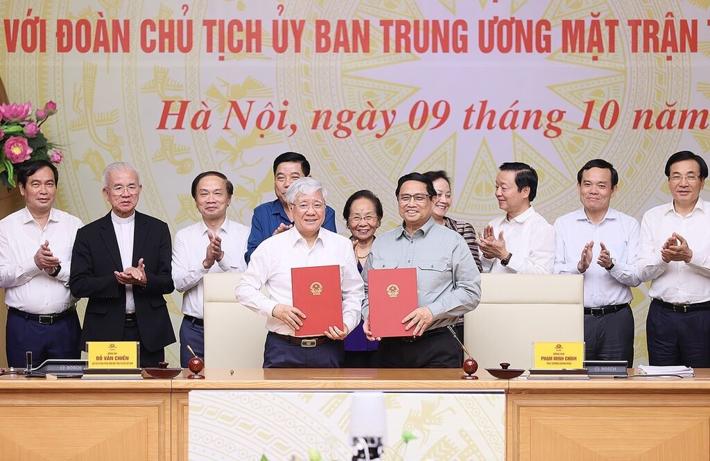 À cette occasion, Pham Minh Chinh et Dô Van Chiên ont signé une résolution conjointe sur la coordination entre le gouvernement et le Présidium du Comité central du Front de la Patrie du Vietnam dans la nouvelle période.