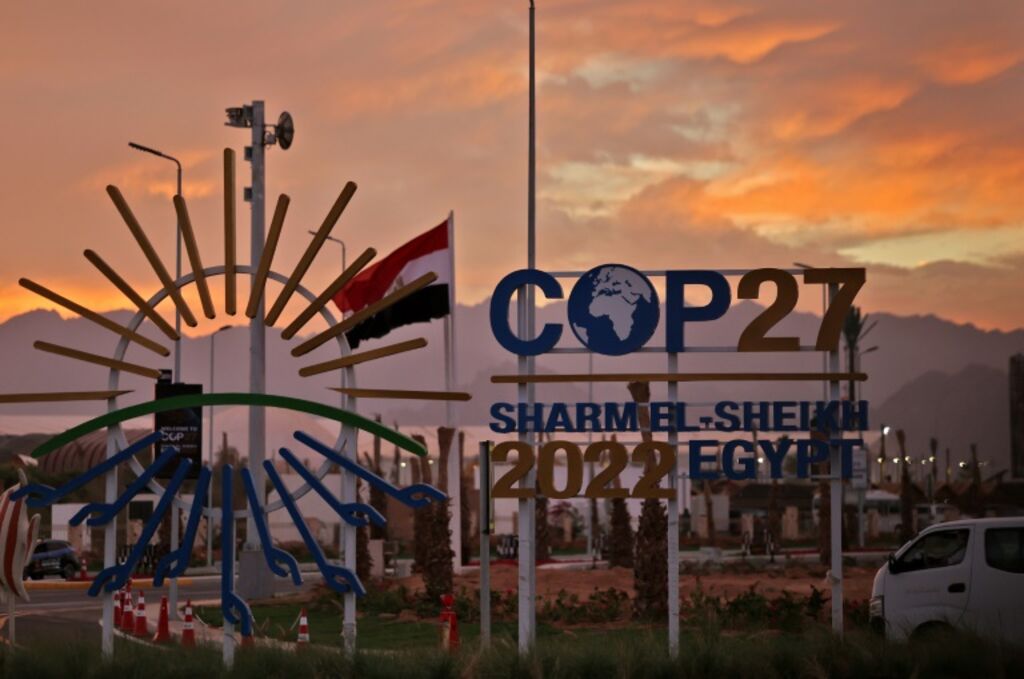 | Le logo de la COP27, à Charm el-Cheikh en Égypte, le 14 novembre. |