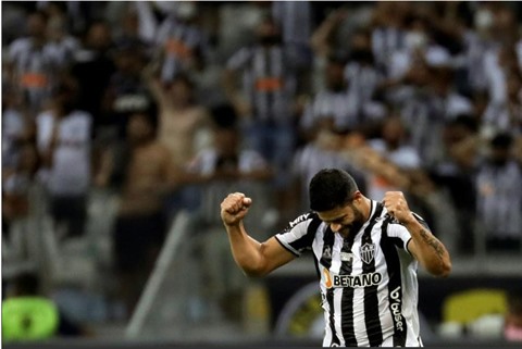 | L'attaquant brésilien de Atlético Mineiro, Hulk, après un but contre River Plate en Copa Libertadores, à Belo Horizonte, le 18 août. |