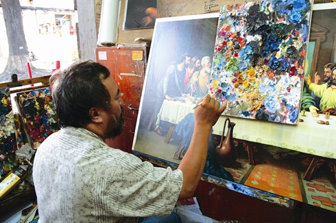 | Le «Roi de la copie de tableaux» Trân Anh Tru en plein travail. |