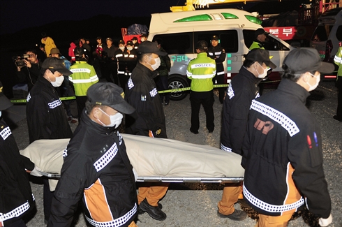 Les corps ont été placés sous des tentes dans le port de l’île de Jindo, près du site de la catastrophe, où les proches des passagers campent dans un gymnase. Ceux-ci devaient décliner leur identité avant de commencer à procéder aux douloureuses identifications. Des policiers postés à l’extérieur des tentes pleuraient tandis qu’on entendait des parents crier sous les tentes.