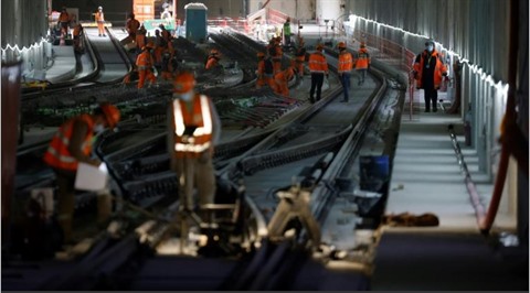| Des ouvriers sur le chantier de construction du métro du Grand Paris, le 29 octobre à Champs-sur-Marne, près de Paris. |