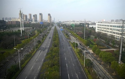 | Une avenue vide à Wuhan (Chine), d'où est partie l'épidémie de coronavirus, le 4 mars. |