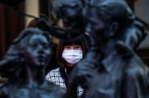 | Une femme portant un masque de protection dans une rue de Shanghai (Chine), le 21 février. |