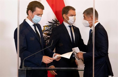 | Le chancelier autrichien Sebastian Kurz reçoit les Premiers ministres tchèque et slovaque le 9 septembre à Vienne. |