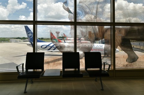 | Des avions de Kenya Airways cloués au sol dur le tarmac de l'aéroport international Jomo Kenyatta à Nairobi le 3 avril. |