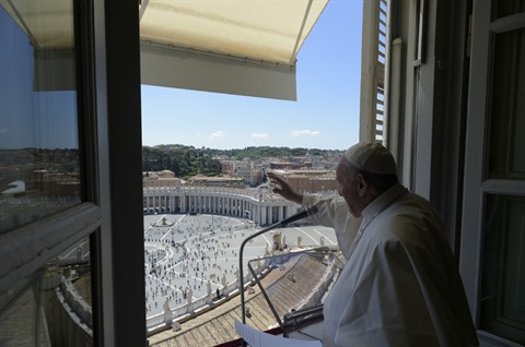 | Photo prise et diffusée par le Vatican montrant le pape qui dirige la prière dominicale sur la place Saint-Pierre à Rome, le 31 mai. |