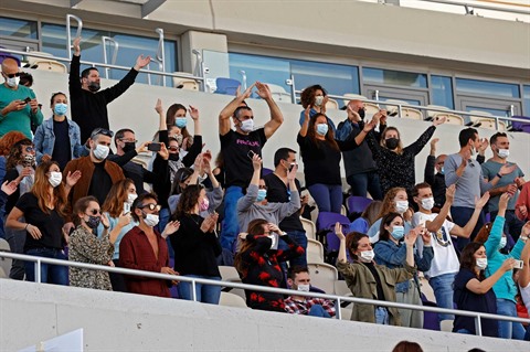 | Des spectateurs détenant un certificat de vaccination assistent à un concert à Tel-Aviv, le 5 mars. |
