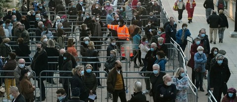 | Des personnes attendent pour se faire vacciner contre le Covid-19, le 6 mars 2021 à Nice, en France. |