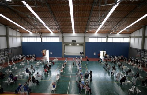 | Un centre de vaccination où est administré le vaccin Oxford/AstraZeneca contre le COVID-19 à Bogota, 7 avril. |