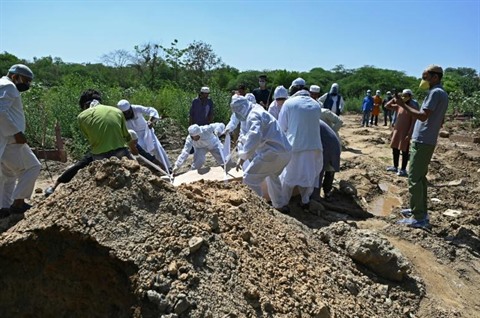 | Enterrement d'une personne décédée du COVID-19, le 22 mai à New Delhi, en Inde. |