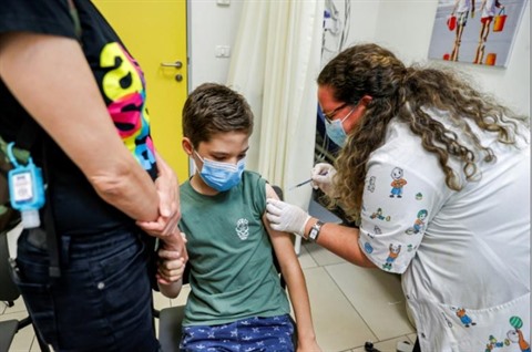 | Un garçon se fait vacciner contre le COVID-19 à Holon (Israël) près de Tel Aviv, le 21 juin. |