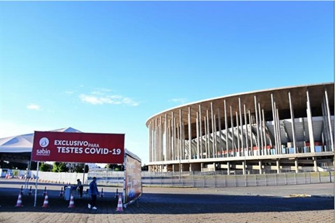 | Vue d'un site de tests du COVID-19 à l'extérieur du stade Mane Garrincha à Brasilia, le 29 juin. |