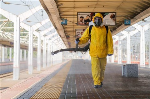 | Désinfection dans un lieu à Moscou pour lutter contre le COVID-19, le 24 juin. |