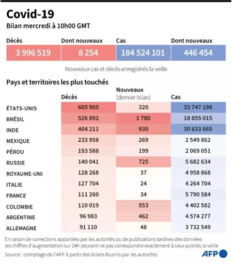 >>COVID-19 : plus de 4 millions de morts dans le monde
