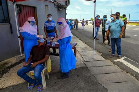 | Test de dépistage du coronavirus à Colombo (Sri Lanka) le 19 août. |