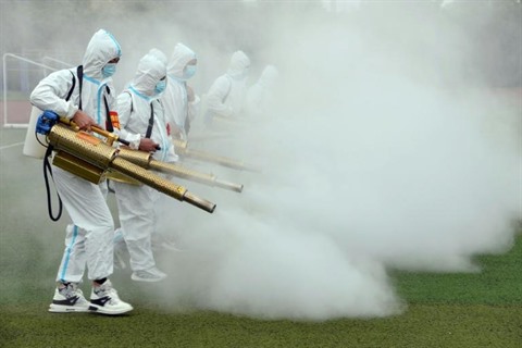 | Désinfection d'une école à Bozhou dans l'Est de la Chine, le 23 août. |