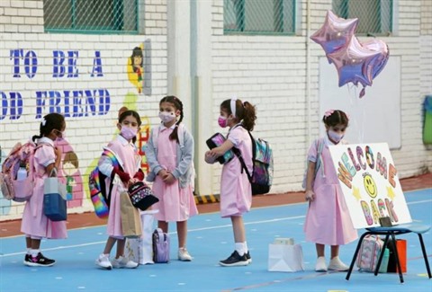 | Retour à l'école pour des élèves dans un établissement de la capitale du Koweït, le 26 septembre. |