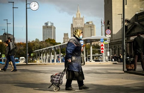 | Une femme avec un masque porte des cierges d'église dans le centre de Moscou en Russie le 28 septembre. |