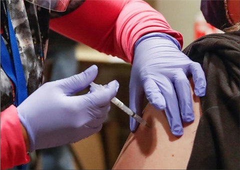 | Femme recevant une dose de vaccin anti-COVID de Johnson&Johnson le 5 mars 2021 à Chicago (aux États-Unis). |