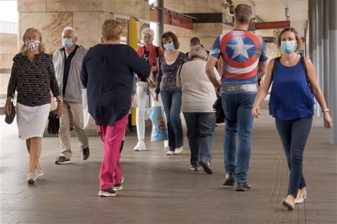 | Des Hongrois portent un masque de protection contre le COVID-19 dans une gare de métro à Budapest. |