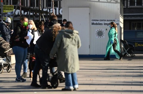 | Queue devant un centre de vaccination mobile à Duisburg, dans l'Ouest de l'Allemagne, le 12 novembre. |