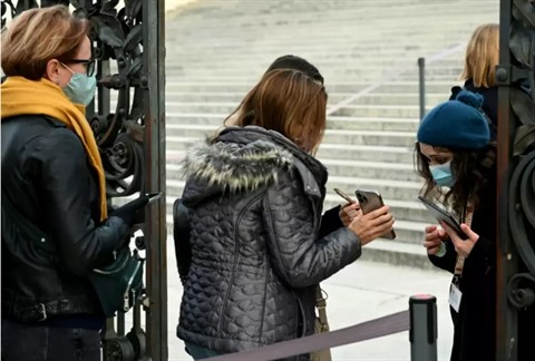 | Des visiteurs montrent leur pass sanitaire à l'entrée d'un monument à Rome, le 5 décembre. |