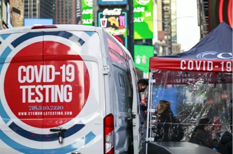 | Une tente pour le dépistage du COVID-19, le 5 décembre à Times Square, à New York. |