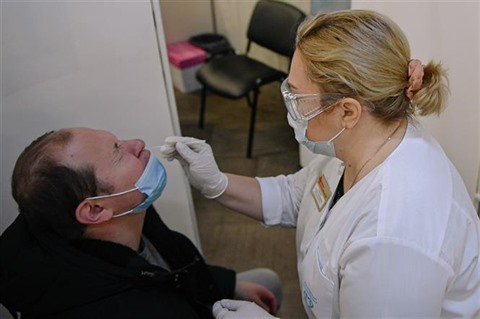 | Prélever l'échantillon de test de dépistage du COVID-19 à Moscou, le 19 novembre. |