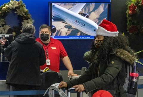 | Des passagers de Delta Airlines s'enregistrent à l'aéroport de Los Angeles le 24 décembre. |
