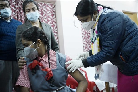 | Une fillette indienne se fait vacciner contre le COVID-19 à Tripura, le 3 janvier. |