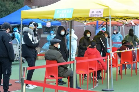 | Des habitants de Tianjin (Chine) font la queue pour se effectuer un test de dépistage du COVID-19, le 10 janvier. |