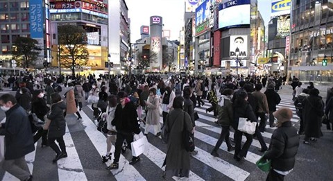 | Japonais portant le masque pour lutter contre le COVID-19 à Tokyo, le 3 février. |