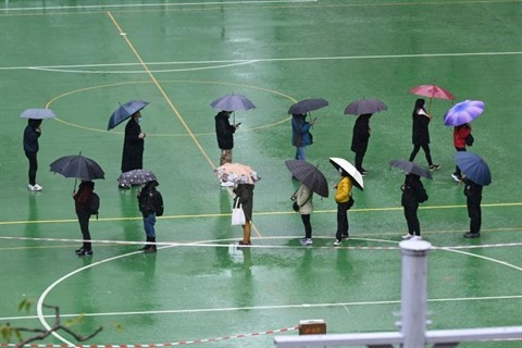 | Des personnes font la queue pour se faire tester au COVID-19, le 22 février à Hong Kong (Chine). |