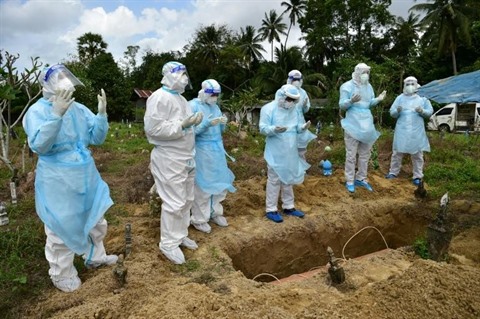 | Lors des funérailles d'une personne décédée du COVID-19, dans un cimetière de Ban Yakang, au Sud de la Thaïlande, le 24 février. |
