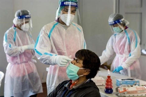 | Un homme se fait tester contre le COVID-19 dans un établissement hospitalier de Bangkok le 24 février. |