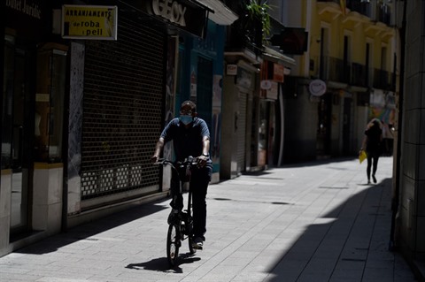| Un homme portant un masque facial fait du vélo à Lérida (Lleida) le 13 juillet. |