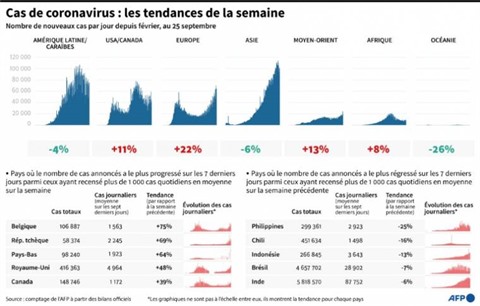 La pandémie du nouveau coronavirus a fait au moins 985.707 morts dans le monde depuis que le bureau de l'OMS en Chine a fait état de l'apparition de la maladie fin décembre, selon un bilan établi par l'AFP à partir de sources officielles vendredi 25 septembre à 18h00 GMT.